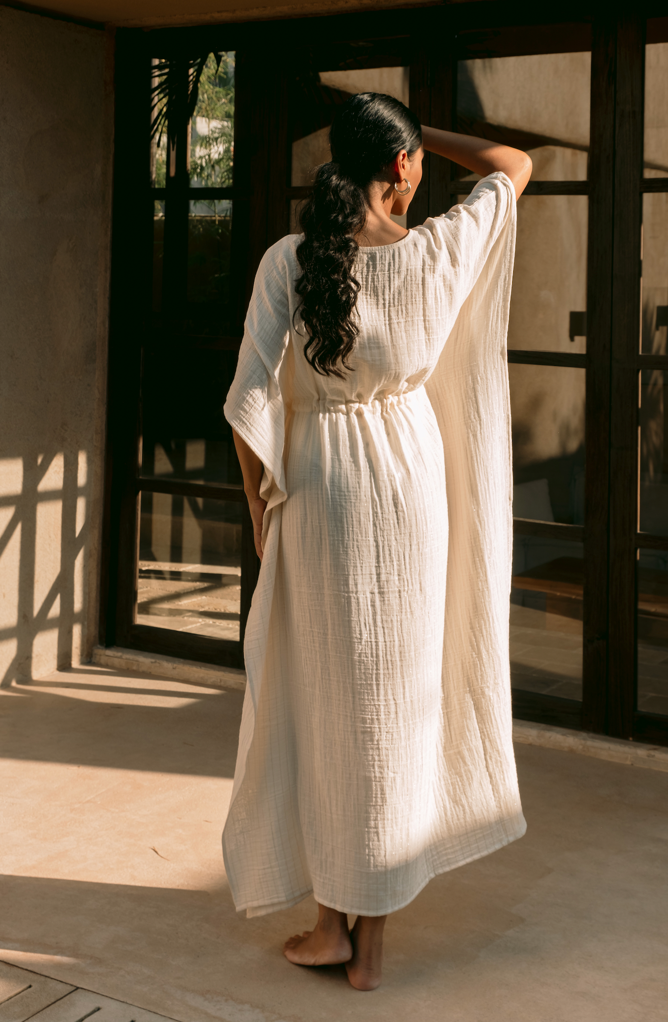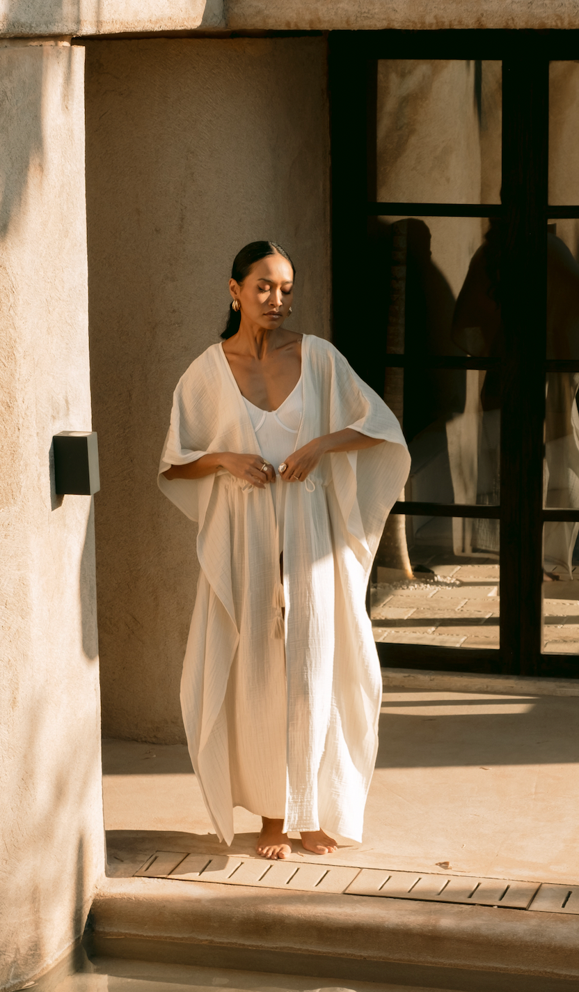 A flowing long kaftan crafted from pure Turkish cotton. Lightweight, elegant, and perfect for beachside or resort escapes.