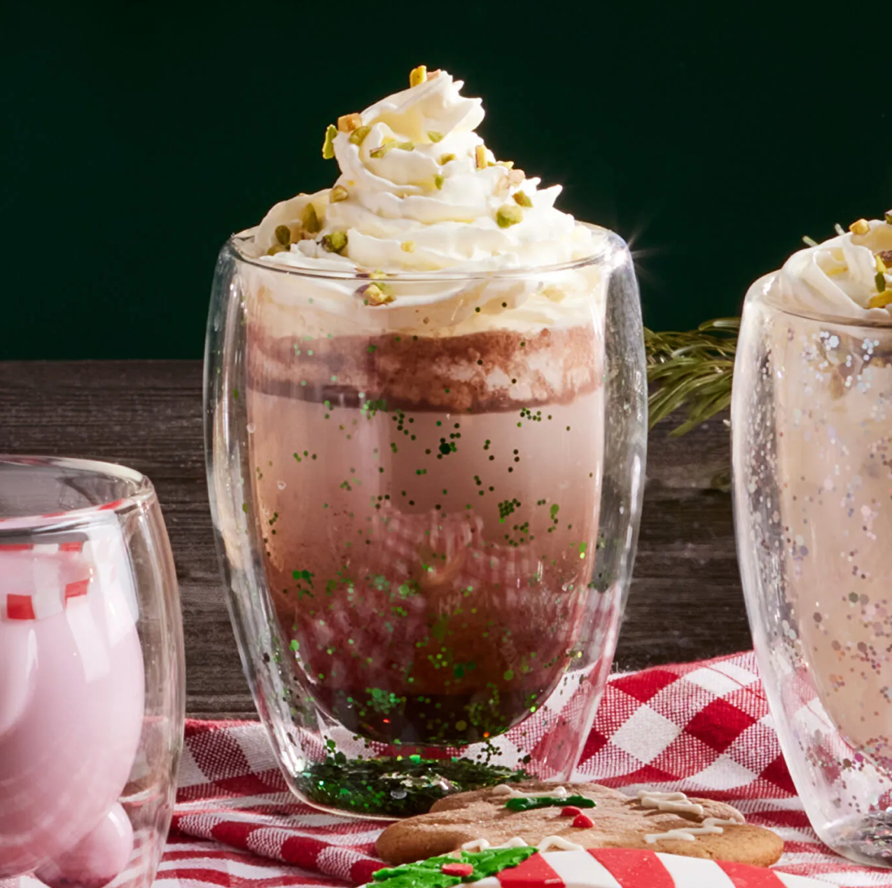 CHRISTMAS FUN GLASS GREEN GLITTER
