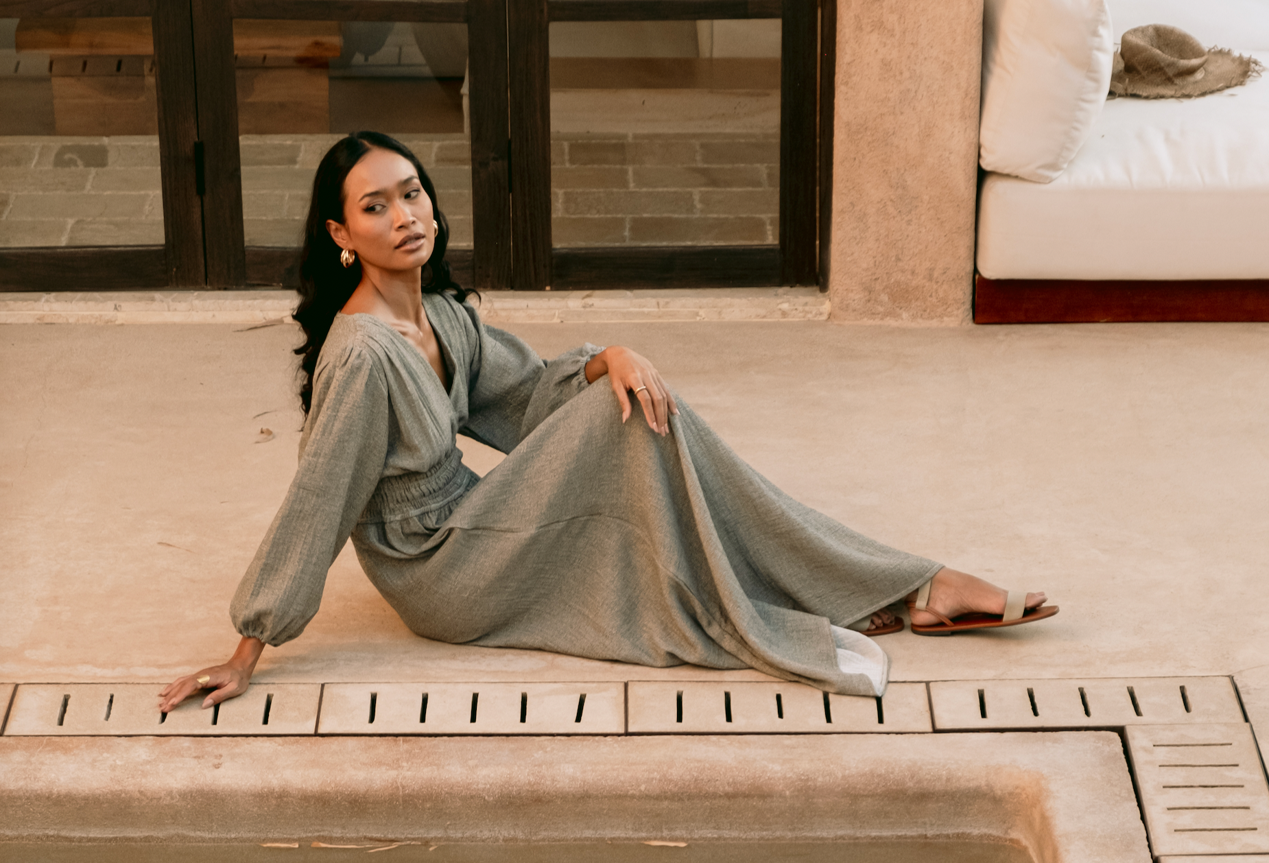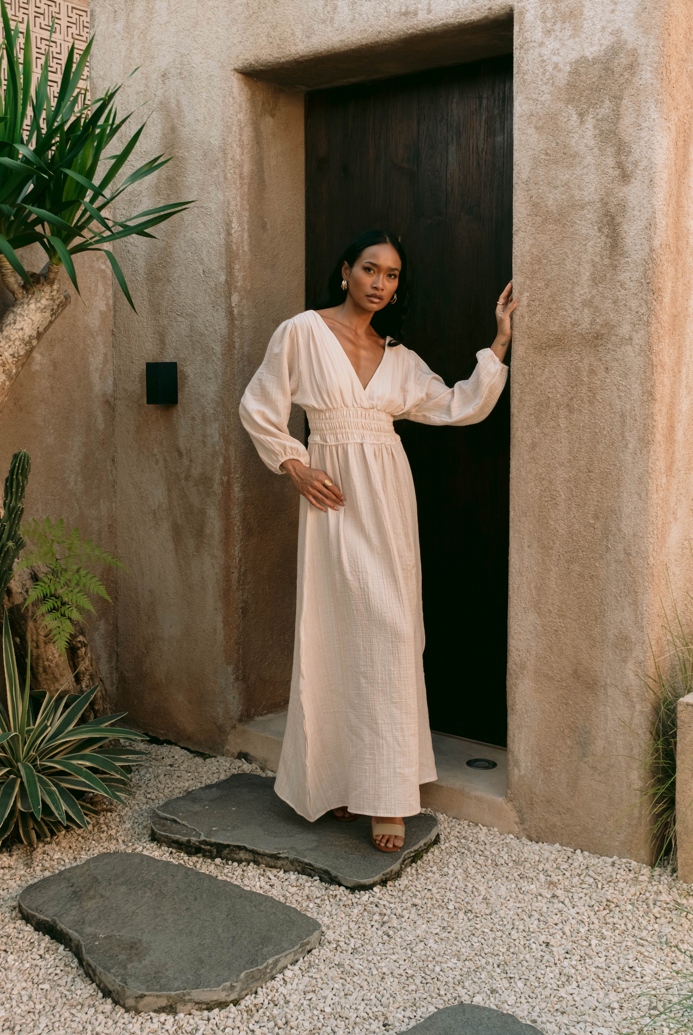 A flowing long maxi dress crafted from pure Turkish cotton. Lightweight, elegant, and perfect for beachside or resort escapes.